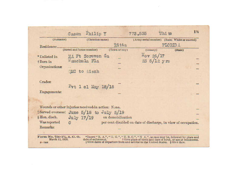 Florida. Military Dept. Philip Y Cason. . State Archives of Florida, Florida Memory. <https://www.floridamemory.com/items/show/199483>, accessed 28 November 2025.