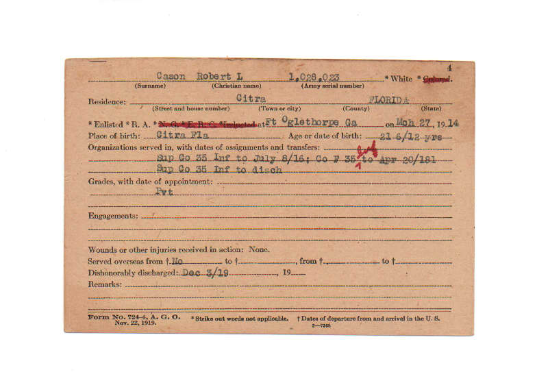 Florida. Military Dept. Robert L Cason. . State Archives of Florida, Florida Memory. <https://www.floridamemory.com/items/show/199484>, accessed 28 November 2025.