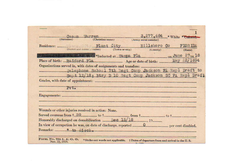 Florida. Military Dept. Warren Cason. . State Archives of Florida, Florida Memory. <https://www.floridamemory.com/items/show/199491>, accessed 28 November 2025.