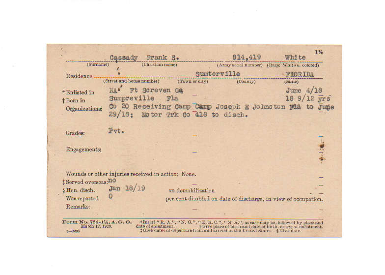 Florida. Military Dept. Frank S Cassady. . State Archives of Florida, Florida Memory. <https://www.floridamemory.com/items/show/199498>, accessed 27 November 2025.