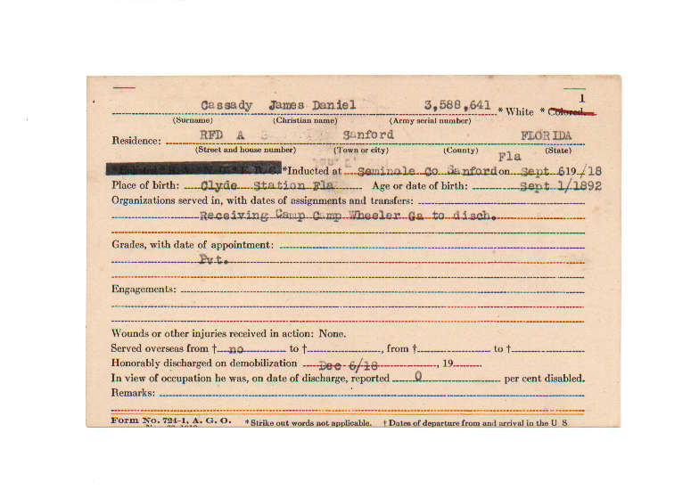 Florida. Military Dept. James Daniel Cassady. . State Archives of Florida, Florida Memory. <https://www.floridamemory.com/items/show/199499>, accessed 27 November 2025.