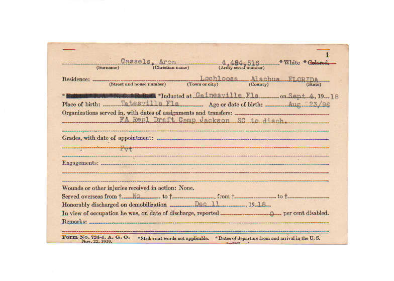 Florida. Military Dept. Aron Cassels. . State Archives of Florida, Florida Memory. <https://www.floridamemory.com/items/show/199501>, accessed 27 November 2025.
