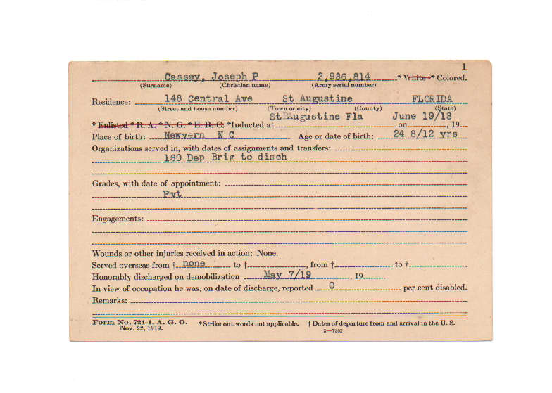 Florida. Military Dept. Joseph P Cassey. . State Archives of Florida, Florida Memory. <https://www.floridamemory.com/items/show/199504>, accessed 27 November 2025.
