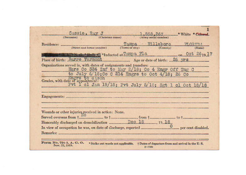 Florida. Military Dept. Ray J Cassie. . State Archives of Florida, Florida Memory. <https://www.floridamemory.com/items/show/199507>, accessed 27 November 2025.