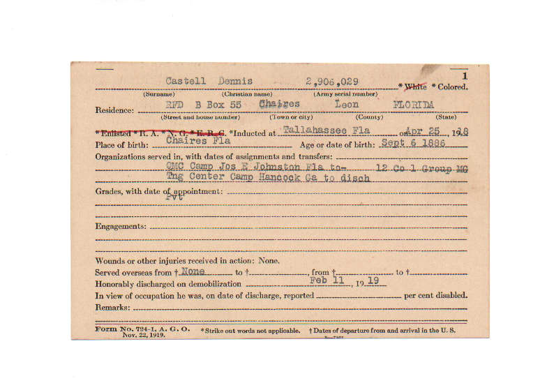 Florida. Military Dept. Dennis Castell. . State Archives of Florida, Florida Memory. Accessed 27 Nov. 2025.<https://www.floridamemory.com/items/show/199509>