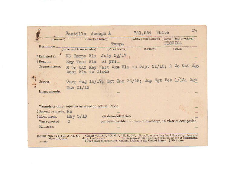 Florida. Military Dept. Joseph A Castillo. . State Archives of Florida, Florida Memory. <https://www.floridamemory.com/items/show/199514>, accessed 27 November 2025.