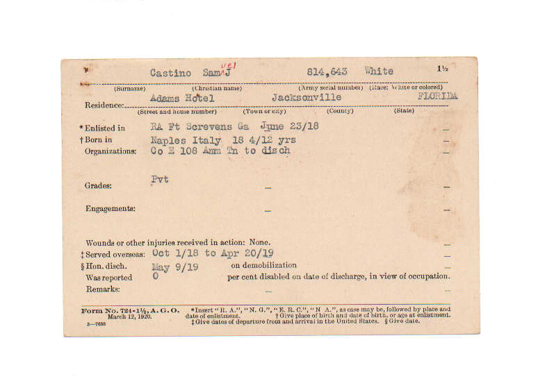 Florida. Military Dept. Samuel J Castino. . State Archives of Florida, Florida Memory. <https://www.floridamemory.com/items/show/199515>, accessed 27 November 2025.
