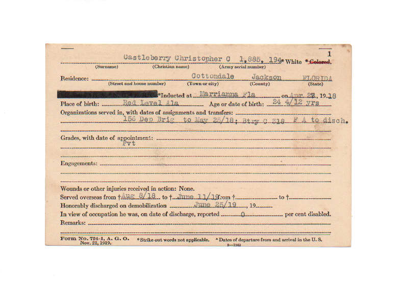 Florida. Military Dept. Christopher C Castleberry. . State Archives of Florida, Florida Memory. <https://www.floridamemory.com/items/show/199518>, accessed 27 November 2025.
