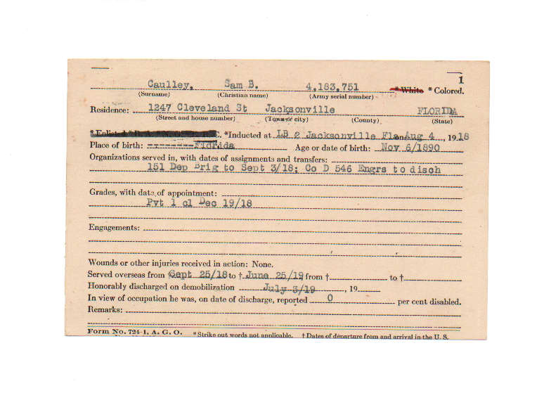 Florida. Military Dept. Sam B Caulley. . State Archives of Florida, Florida Memory. <https://www.floridamemory.com/items/show/199552>, accessed 26 November 2025.