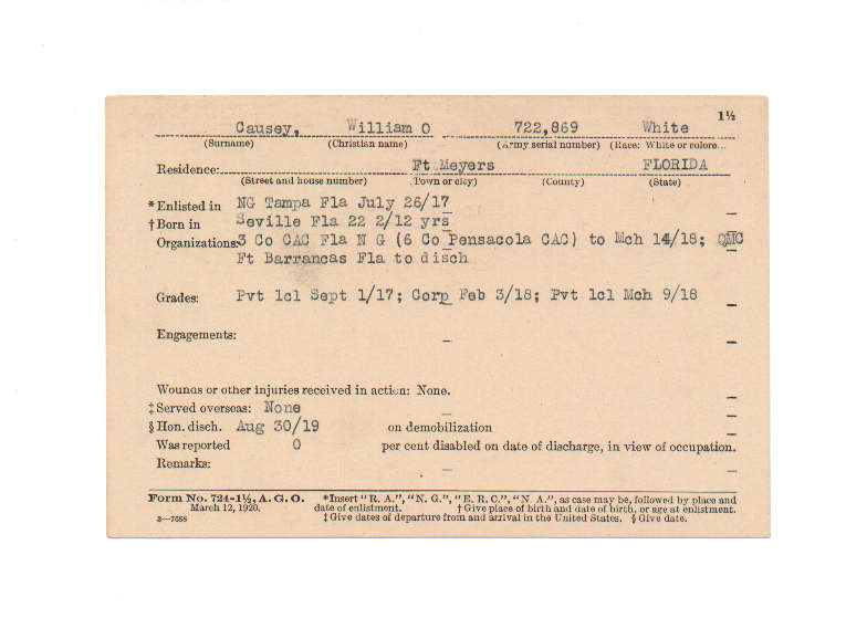 Florida. Military Dept. William O Causey. . State Archives of Florida, Florida Memory. <https://www.floridamemory.com/items/show/199555>, accessed 26 November 2025.