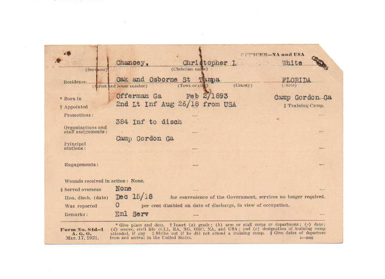 Florida. Military Dept. Christopher L Chancey. . State Archives of Florida, Florida Memory. <https://www.floridamemory.com/items/show/199655>, accessed 26 November 2025.
