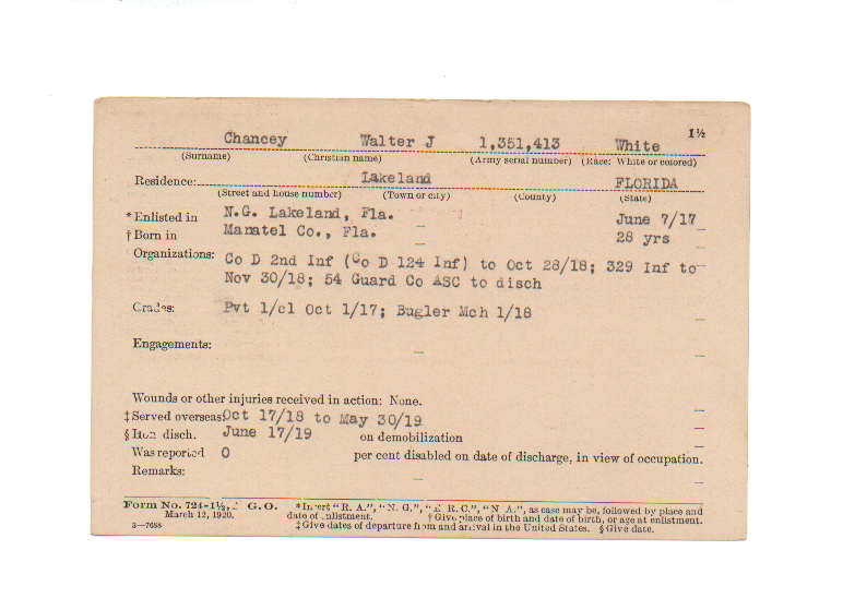 Florida. Military Dept. Walter J Chancey. . State Archives of Florida, Florida Memory. <https://www.floridamemory.com/items/show/199659>, accessed 26 November 2025.