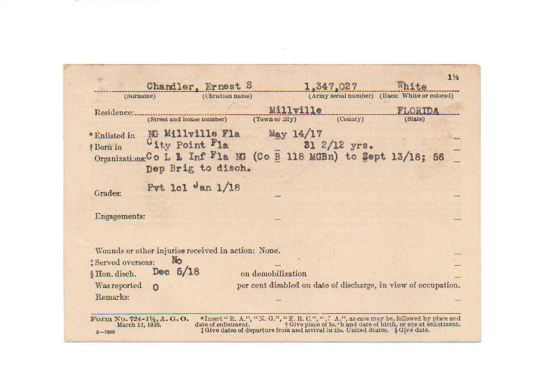 Florida. Military Dept. Ernest S Chandler. . State Archives of Florida, Florida Memory. <https://www.floridamemory.com/items/show/199663>, accessed 26 November 2025.