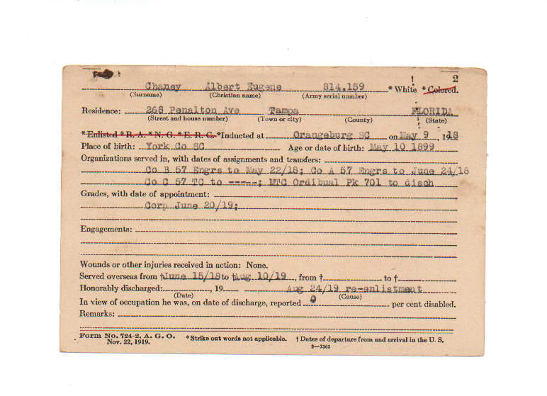 Florida. Military Dept. Albert Eugene Chaney. . State Archives of Florida, Florida Memory. <https://www.floridamemory.com/items/show/199679>, accessed 26 November 2025.