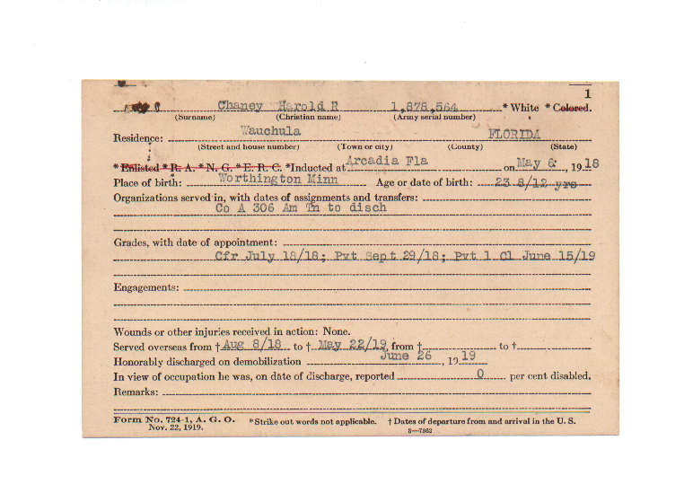 Florida. Military Dept. Harold R Chaney. . State Archives of Florida, Florida Memory. Accessed 26 Nov. 2025.<https://www.floridamemory.com/items/show/199680>