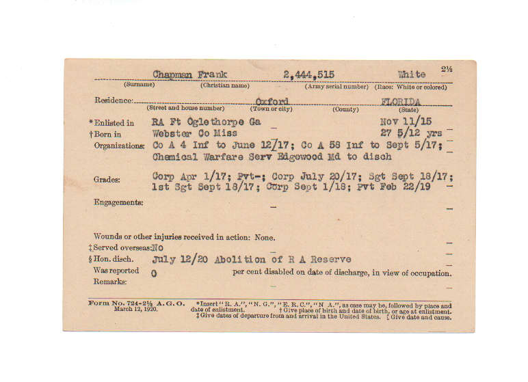 Florida. Military Dept. Frank Chapman. . State Archives of Florida, Florida Memory. Accessed 27 Nov. 2025.<https://www.floridamemory.com/items/show/199687>