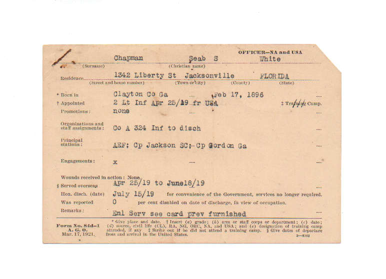 Florida. Military Dept. Seab S Chapman. . State Archives of Florida, Florida Memory. Accessed 27 Nov. 2025.<https://www.floridamemory.com/items/show/199696>