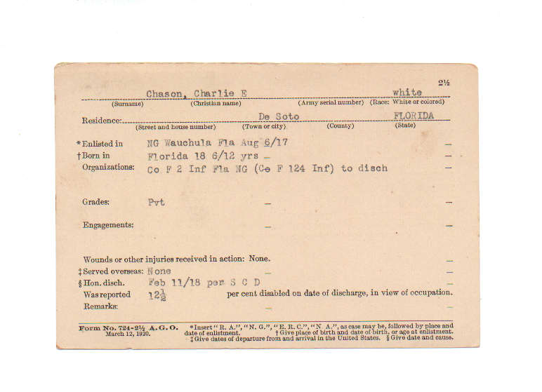 Florida. Military Dept. Charlie E Chason. . State Archives of Florida, Florida Memory. <https://www.floridamemory.com/items/show/199718>, accessed 28 November 2025.