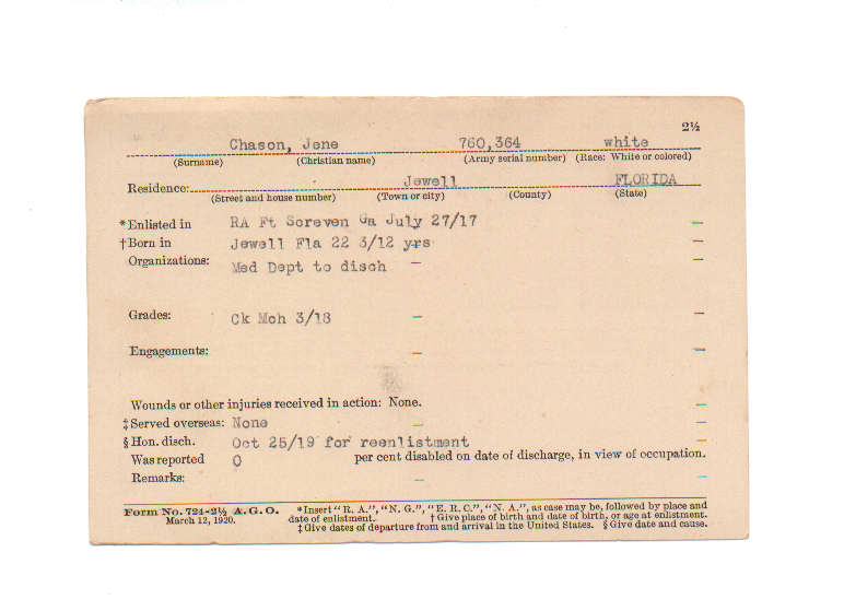 Florida. Military Dept. Jene Chason. . State Archives of Florida, Florida Memory. Accessed 28 Nov. 2025.<https://www.floridamemory.com/items/show/199719>