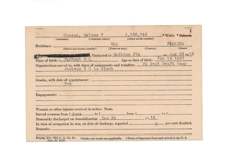 Florida. Military Dept. Malcom T Chason. . State Archives of Florida, Florida Memory. <https://www.floridamemory.com/items/show/199720>, accessed 28 November 2025.