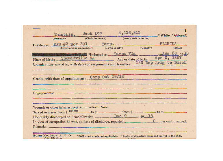 Florida. Military Dept. Jack Lee Chastain. . State Archives of Florida, Florida Memory. <https://www.floridamemory.com/items/show/199722>, accessed 28 November 2025.