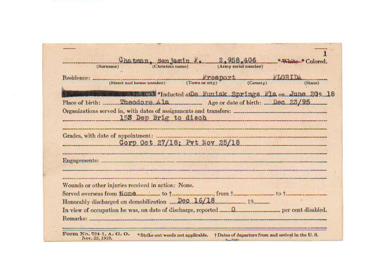 Florida. Military Dept. Benjamin F Chatman. . State Archives of Florida, Florida Memory. <https://www.floridamemory.com/items/show/199729>, accessed 28 November 2025.