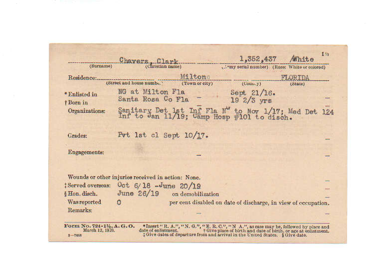 Florida. Military Dept. Clark Chavers. . State Archives of Florida, Florida Memory. Accessed 29 Nov. 2025.<https://www.floridamemory.com/items/show/199733>