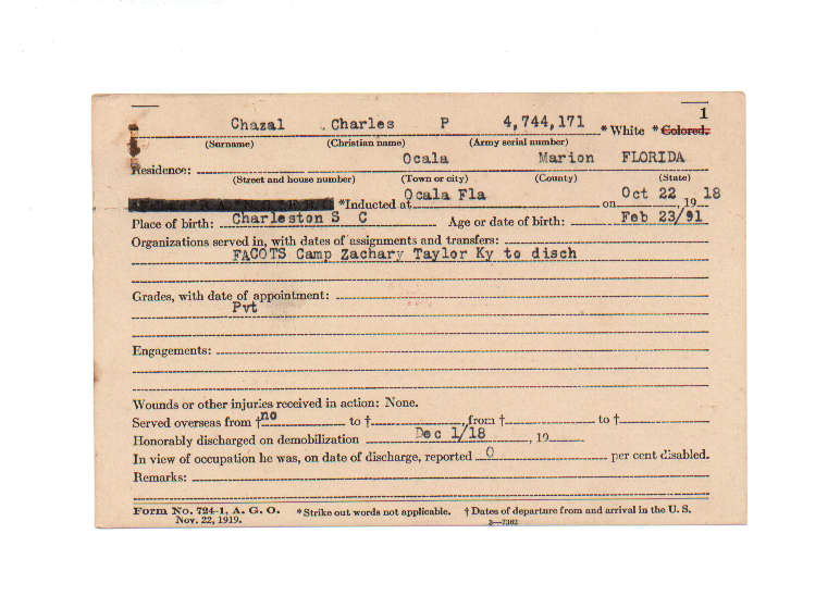 Florida. Military Dept. Charles P Chazal. . State Archives of Florida, Florida Memory. <https://www.floridamemory.com/items/show/199741>, accessed 29 November 2025.
