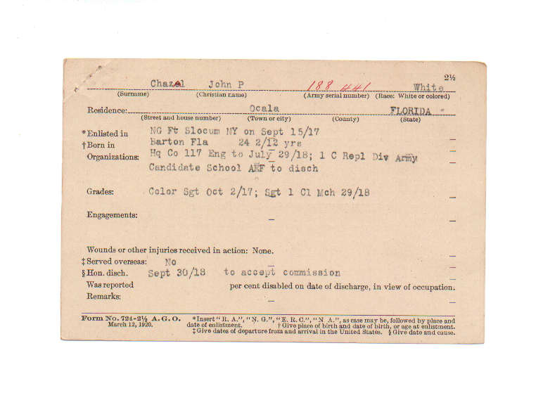 Florida. Military Dept. John P Chazal. . State Archives of Florida, Florida Memory. <https://www.floridamemory.com/items/show/199743>, accessed 29 November 2025.