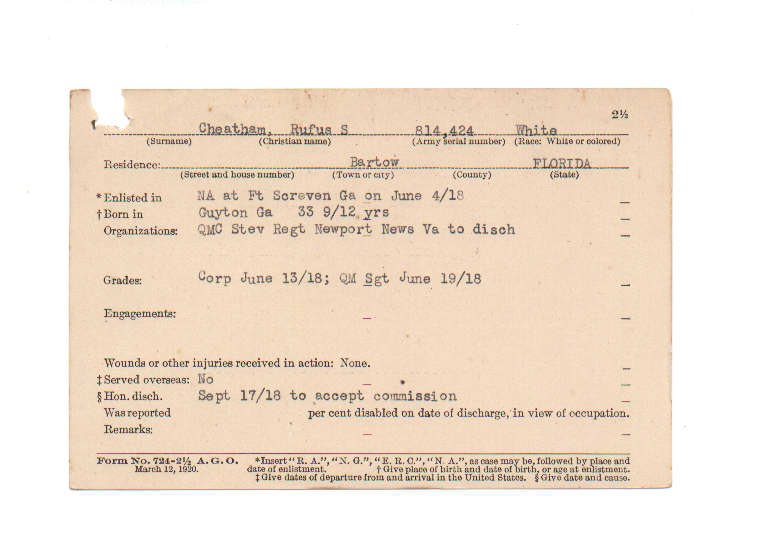 Florida. Military Dept. Rufus S Cheatham. . State Archives of Florida, Florida Memory. <https://www.floridamemory.com/items/show/199748>, accessed 29 November 2025.