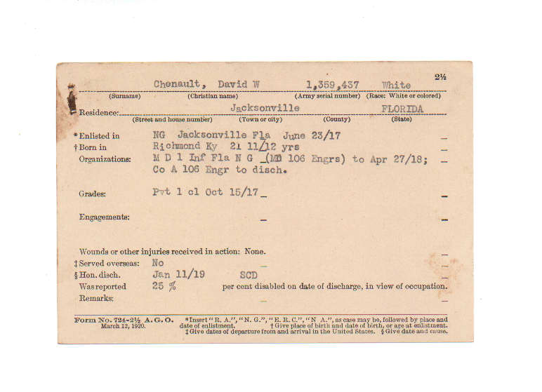 Florida. Military Dept. David W Chenault. . State Archives of Florida, Florida Memory. <https://www.floridamemory.com/items/show/199755>, accessed 29 November 2025.