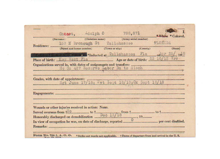 Florida. Military Dept. Adolph O Cherot. . State Archives of Florida, Florida Memory. <https://www.floridamemory.com/items/show/199762>, accessed 29 November 2025.