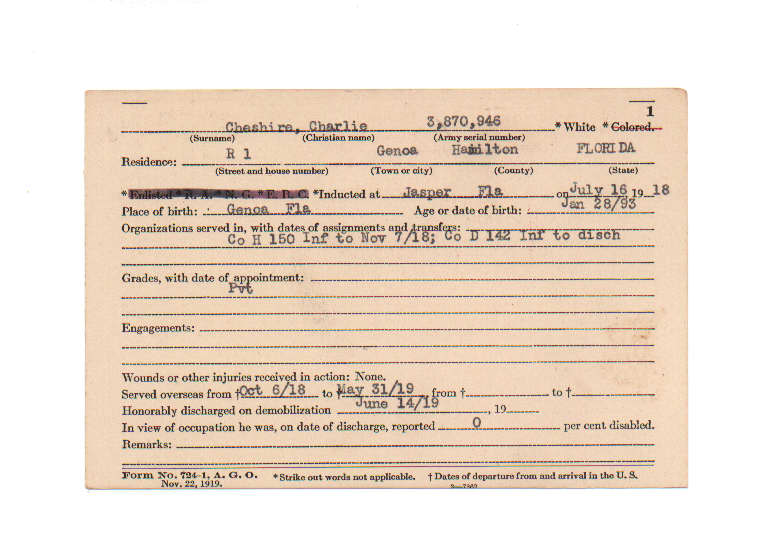 Florida. Military Dept. Charlie Cheshire. . State Archives of Florida, Florida Memory. Accessed 30 Nov. 2025.<https://www.floridamemory.com/items/show/199778>