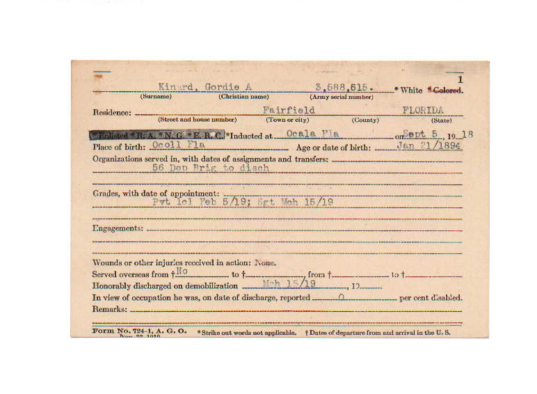Florida. Military Dept. Gordie A Kinard. . State Archives of Florida, Florida Memory. <https://www.floridamemory.com/items/show/210641>, accessed 1 January 2026.