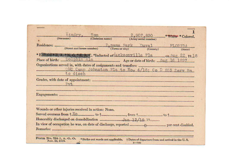 Florida. Military Dept. Tom Kindry. . State Archives of Florida, Florida Memory. <https://www.floridamemory.com/items/show/210651>, accessed 31 December 2025.