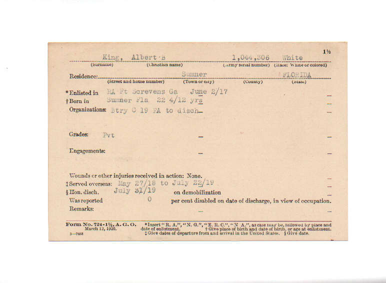 Florida. Military Dept. Albert B King. . State Archives of Florida, Florida Memory. Accessed 31 Dec. 2025.<https://www.floridamemory.com/items/show/210656>