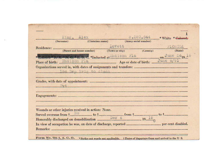 Florida. Military Dept. Alex King. . State Archives of Florida, Florida Memory. Accessed 31 Dec. 2025.<https://www.floridamemory.com/items/show/210657>