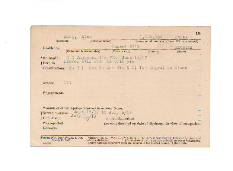 Florida. Military Dept. Alex King. . State Archives of Florida, Florida Memory. Accessed 31 Dec. 2025.<https://www.floridamemory.com/items/show/210658>