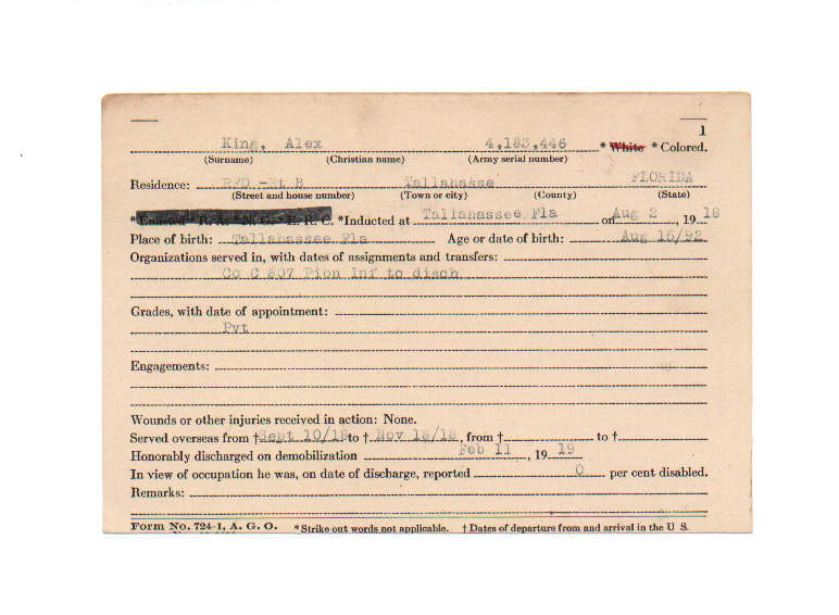 Florida. Military Dept. Alex King. . State Archives of Florida, Florida Memory. Accessed 31 Dec. 2025.<https://www.floridamemory.com/items/show/210659>