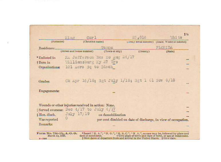 Florida. Military Dept. Carl King. . State Archives of Florida, Florida Memory. <https://www.floridamemory.com/items/show/210673>, accessed 29 December 2025.