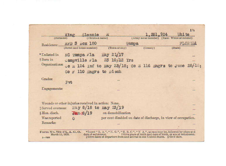Florida. Military Dept. Glennie K King. . State Archives of Florida, Florida Memory. <https://www.floridamemory.com/items/show/210691>, accessed 28 December 2025.