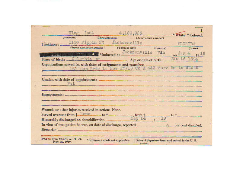 Florida. Military Dept. Izel King. . State Archives of Florida, Florida Memory. <https://www.floridamemory.com/items/show/210698>, accessed 27 December 2025.