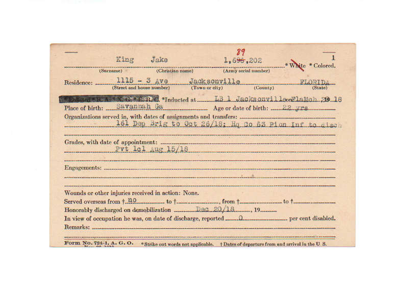 Florida. Military Dept. Jake King. . State Archives of Florida, Florida Memory. Accessed 27 Dec. 2025.<https://www.floridamemory.com/items/show/210699>