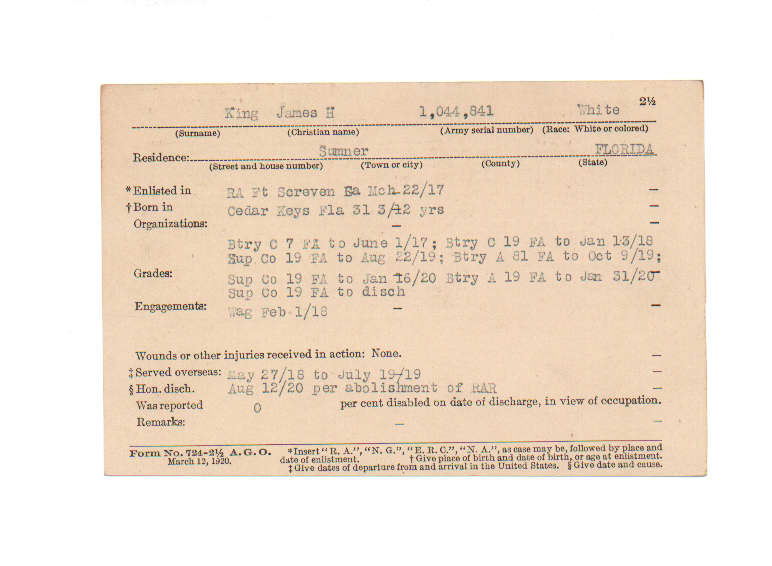 Florida. Military Dept. James H King. . State Archives of Florida, Florida Memory. Accessed 27 Dec. 2025.<https://www.floridamemory.com/items/show/210703>