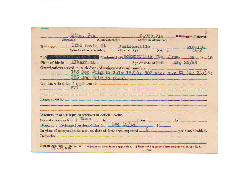 Florida. Military Dept. Joe King. . State Archives of Florida, Florida Memory. Accessed 27 Dec. 2025.<https://www.floridamemory.com/items/show/210710>
