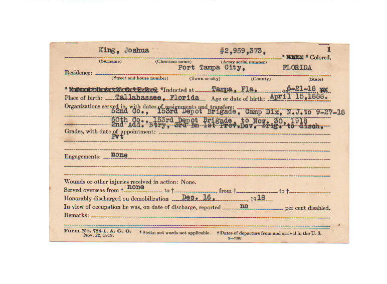 Florida. Military Dept. Joshua King. . State Archives of Florida, Florida Memory. Accessed 25 Dec. 2025.<https://www.floridamemory.com/items/show/210724>
