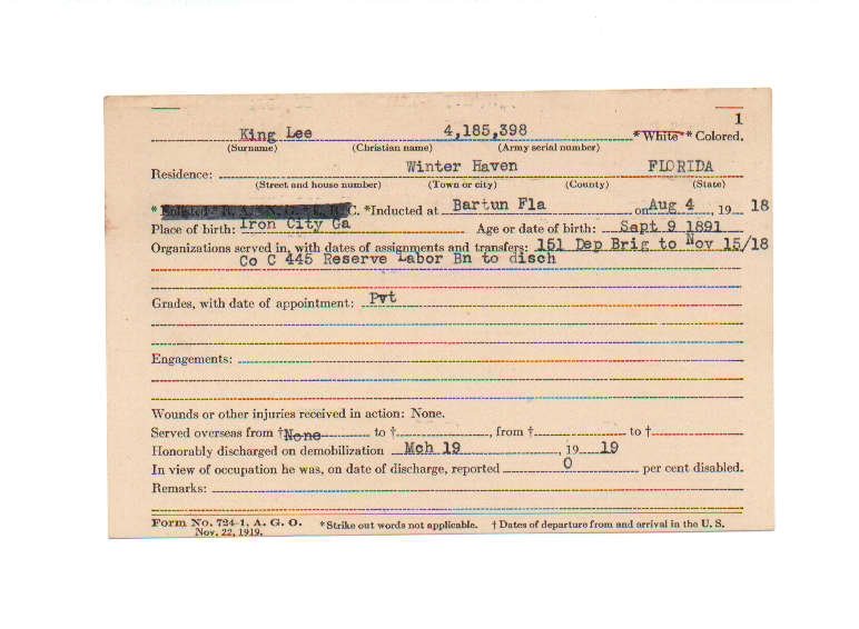 Florida. Military Dept. Lee King. . State Archives of Florida, Florida Memory. Accessed 25 Dec. 2025.<https://www.floridamemory.com/items/show/210726>