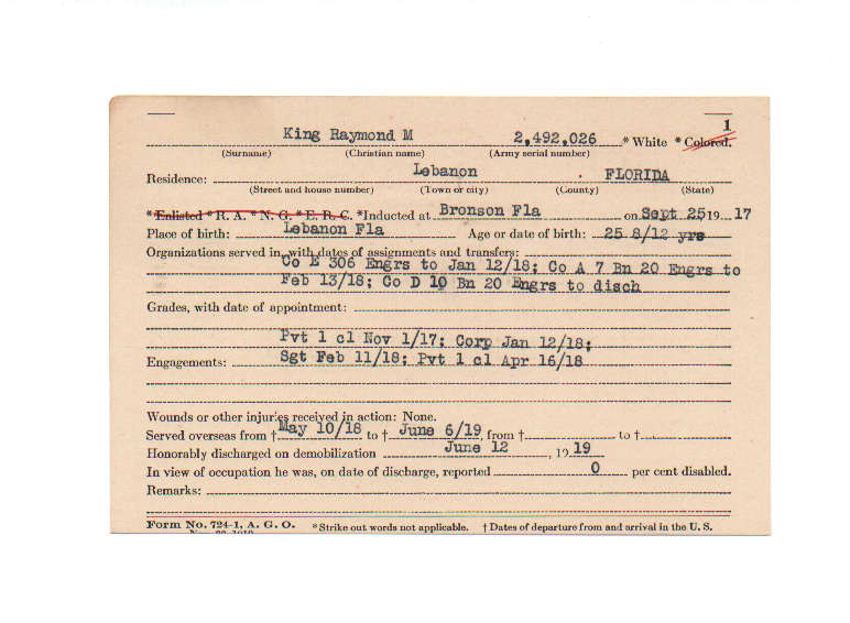 Florida. Military Dept. Raymond M King. . State Archives of Florida, Florida Memory. Accessed 24 Dec. 2025.<https://www.floridamemory.com/items/show/210739>