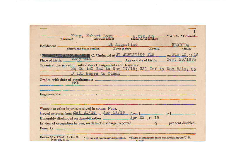 Florida. Military Dept. Robert Boyd King. . State Archives of Florida, Florida Memory. <https://www.floridamemory.com/items/show/210746>, accessed 23 December 2025.