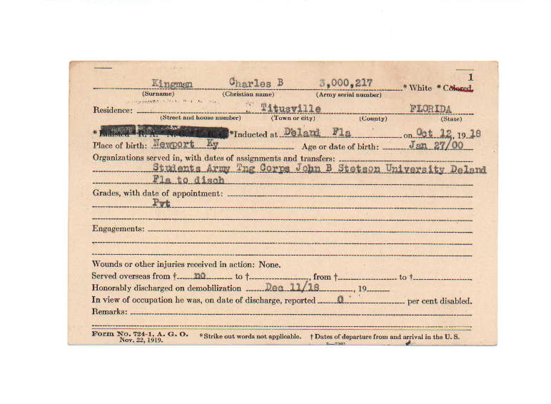 Florida. Military Dept. Charles B Kingman. . State Archives of Florida, Florida Memory. <https://www.floridamemory.com/items/show/210763>, accessed 22 December 2025.